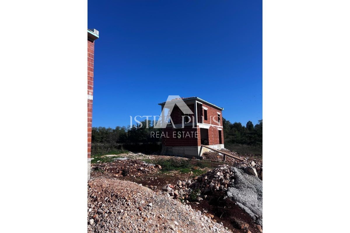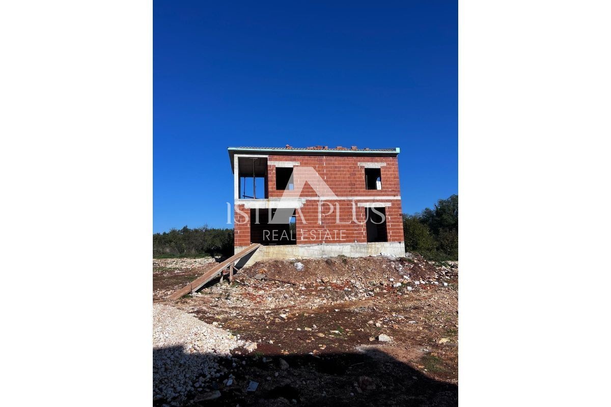 In der Nähe von Poreč, 12 km vom Meer entfernt, ein Haus von 132 m2 im Rohbau auf einem Grundstück von 651 m2 und einem Schwimmbad von 32 m2.