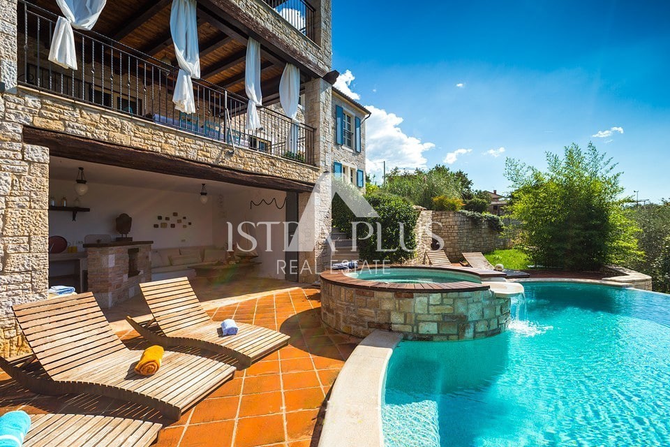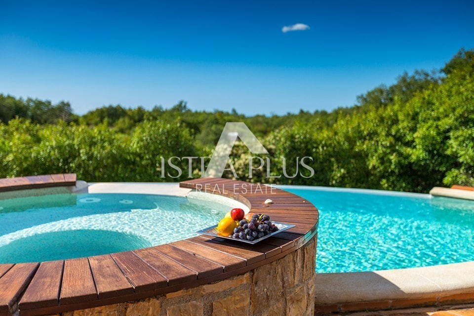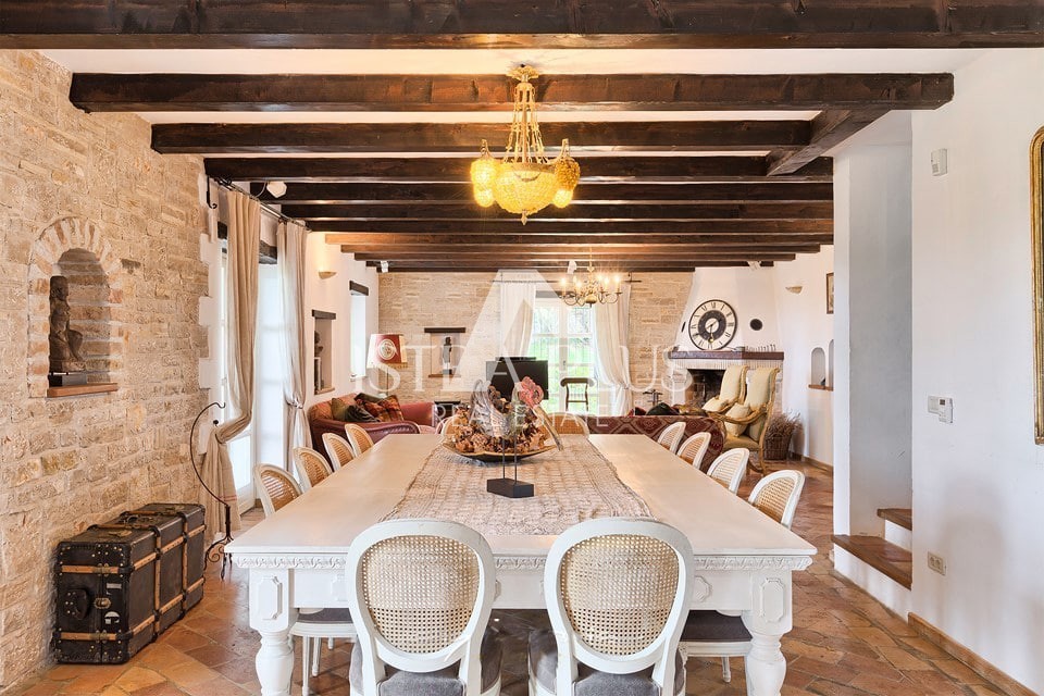 The unique villa of a famous Croatian interior designer, measuring 306m2, is located in the heart of Istria, only a 10-minute drive from the sea.