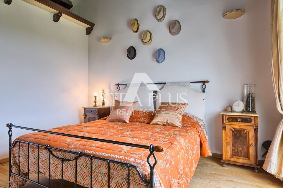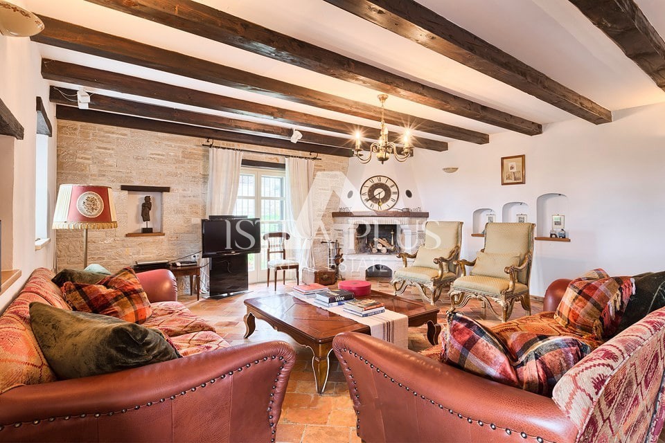 Next to the pool there is a comfortable area for sitting and drinking cocktails. That part of the house reminds of the atmosphere of Mykonos and Bali. In a special part of the garden there is a grill with a classic grill and a real brick pizza oven. Due to the thickness and quality of the stone walls, this villa does not need air conditioning during the summer months. For winter, there is central heating with underfloor heating on the ground floor and radiators in the rooms upstairs, and there is a fireplace in the living room for extra comfort.