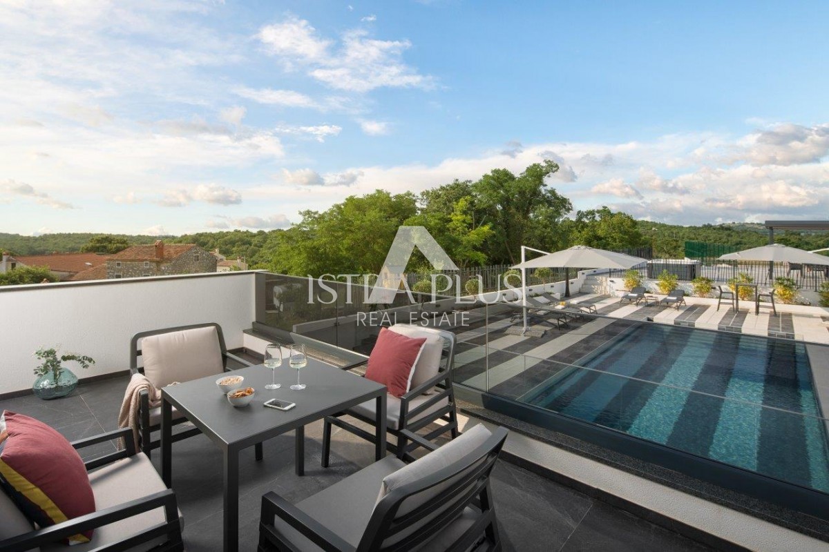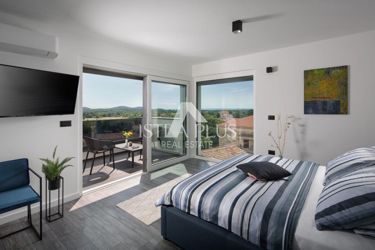 On the first floor there are three bedrooms with private bathrooms, and two have terraces.