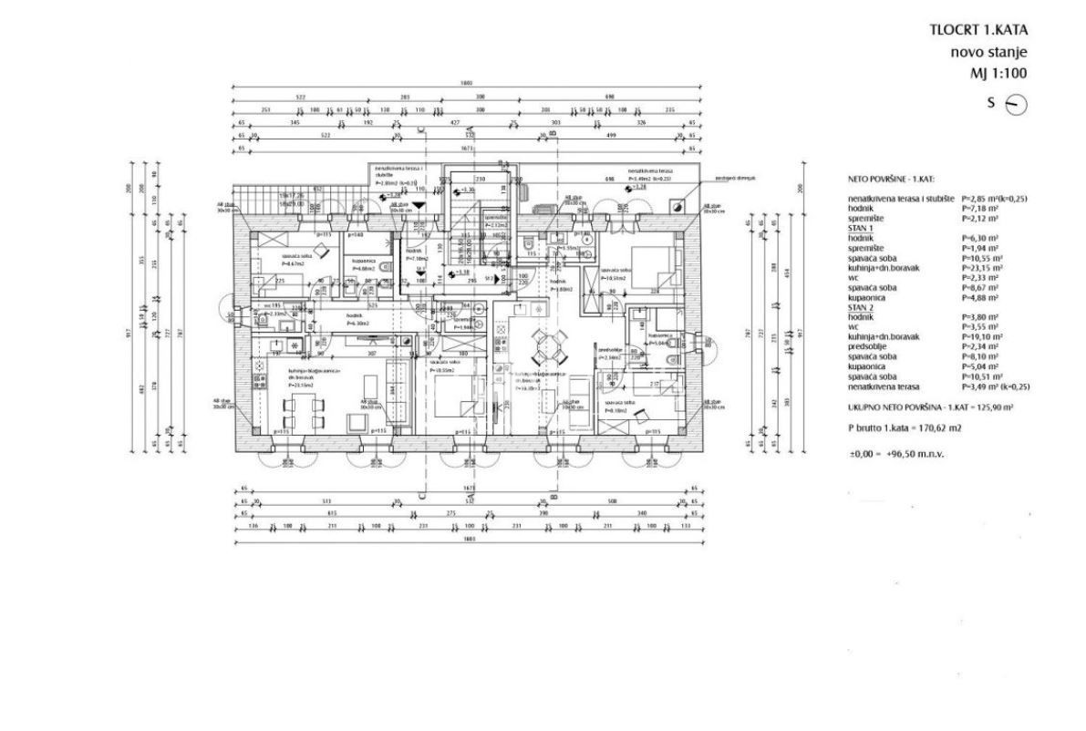 A new apartment is for sale on the 1st floor and consists of an entrance hall, a kitchen with a dining room and a living room, two bedrooms and a bathroom and toilet with a laundry room.