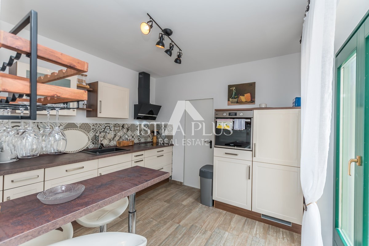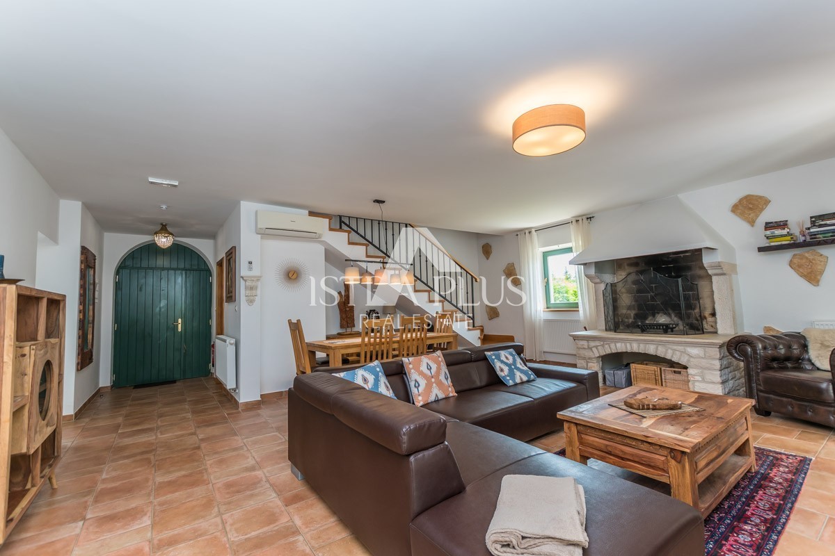 If you are looking for a stylishly decorated Istrian villa with a very special charm, you will love the Villa from this offer. Surrounded by vineyards on the edge of a small Istrian village 3 km from the town of Višnjan. Built on a plot of 667m2 in the traditional Istrian style of construction dominated by Istrian stone decorated with green shutters on the windows and doors exudes a typical Mediterranean charm.