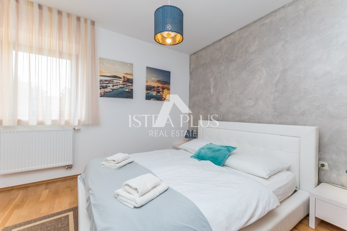 An internal staircase leads to the first floor of the villa where there are three more bedrooms with bathrooms. A special feature is the second separate entrance leading to the upper floor, which gives guests enough privacy and makes the villa ideal for a relaxing family vacation with enough space for everyone.