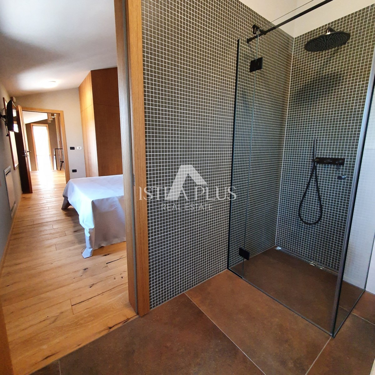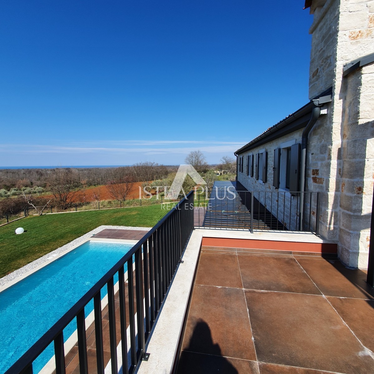 Upstairs, there are 3 bedrooms with private bathrooms and a partially covered terrace with panoramic sea views.
