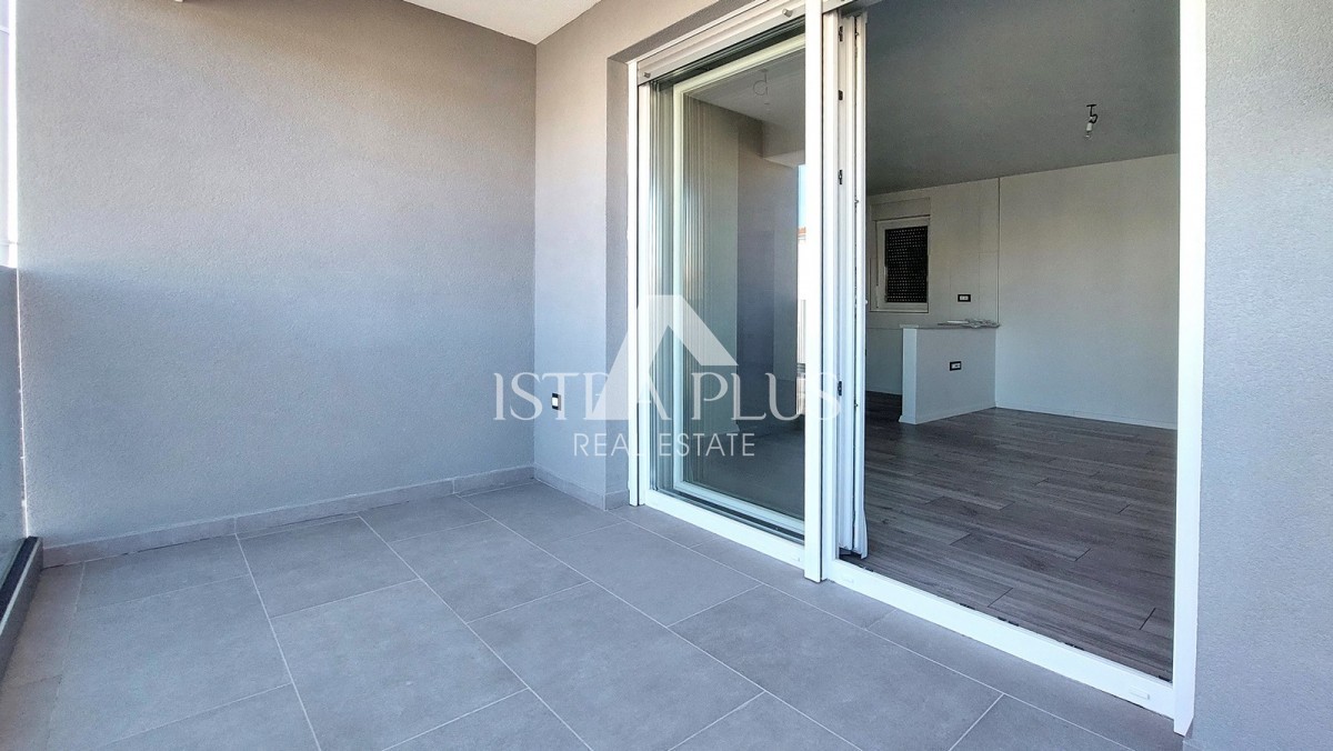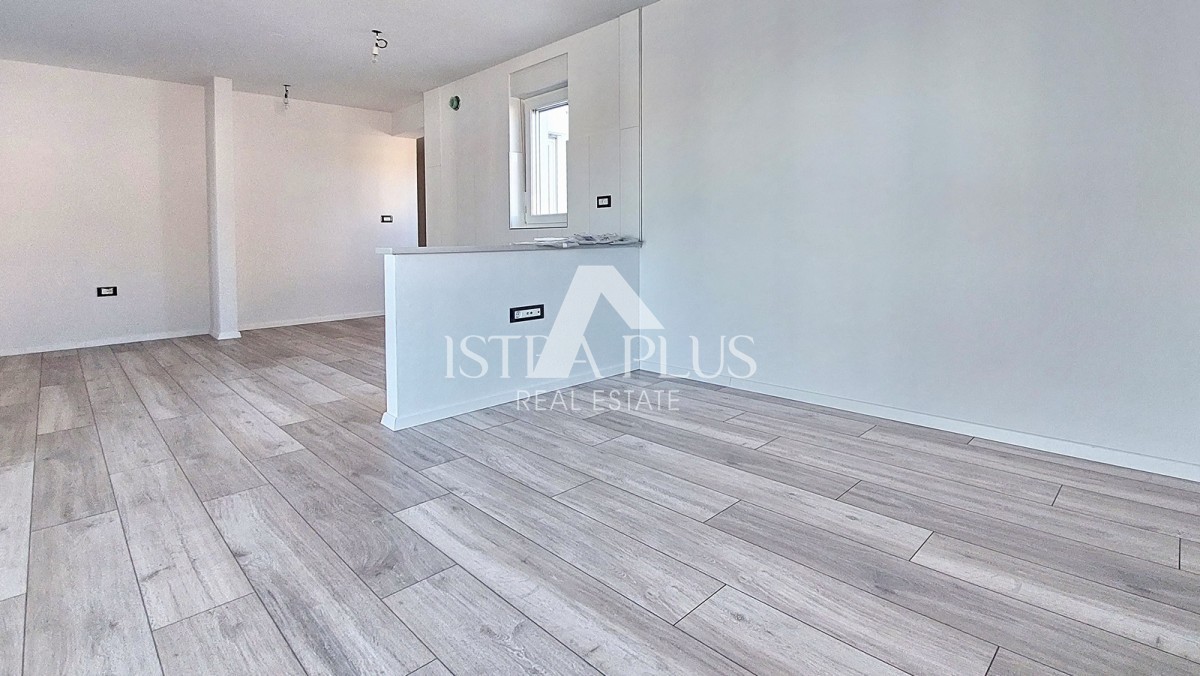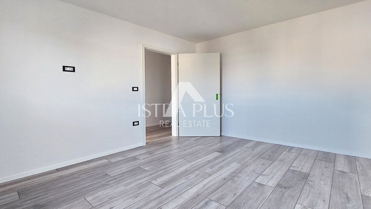 Prodaje se novi stan površine 65 m² u okolici Poreča, sastoji se od ulaznog hodnika, dnevnog boravka, natkrivene terase, kuhinje, dvije spavaće sobe i kupaonice. Stan ima PVC stolariju s 3 IZO stakla i komarnicima, klime u svim sobama, podno grijanje u kupaonici i 2 parkirna mjesta ispred zgrade. Stan se nalazi na drugom katu, udaljen je cca 8 km od mora i cca 7 km od centra grada.
