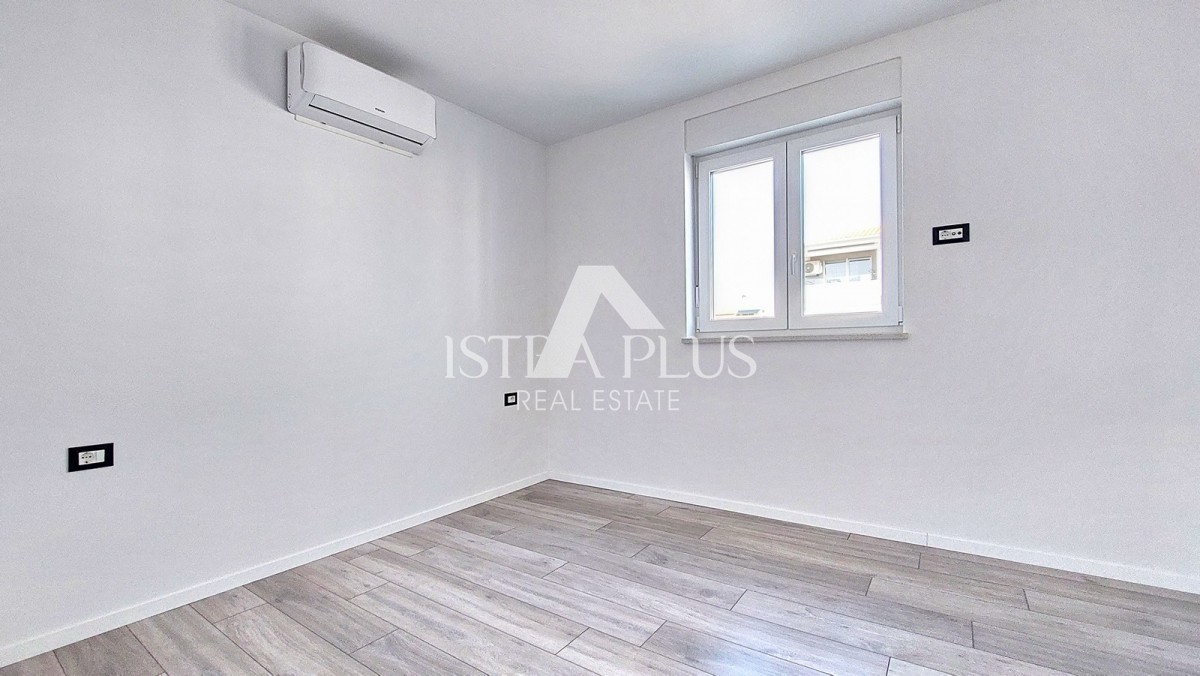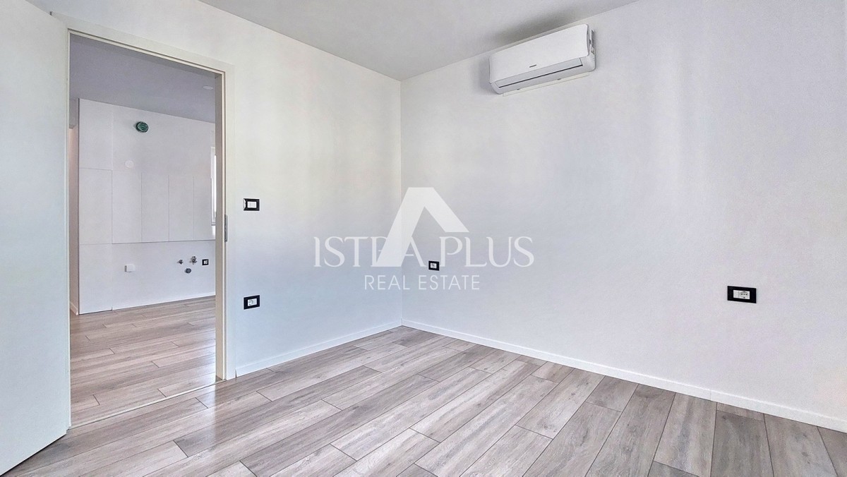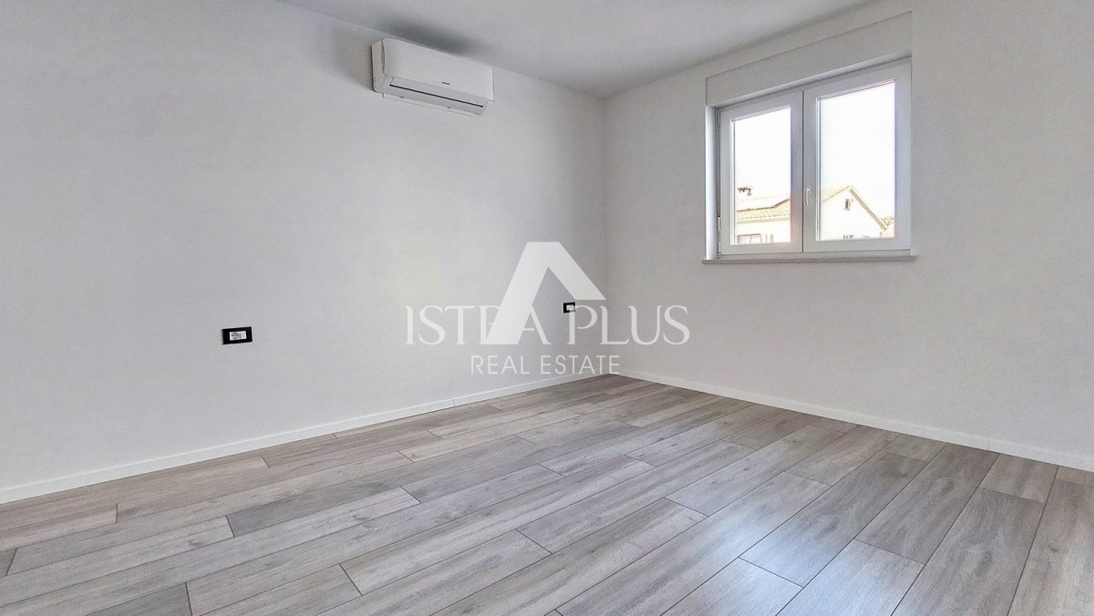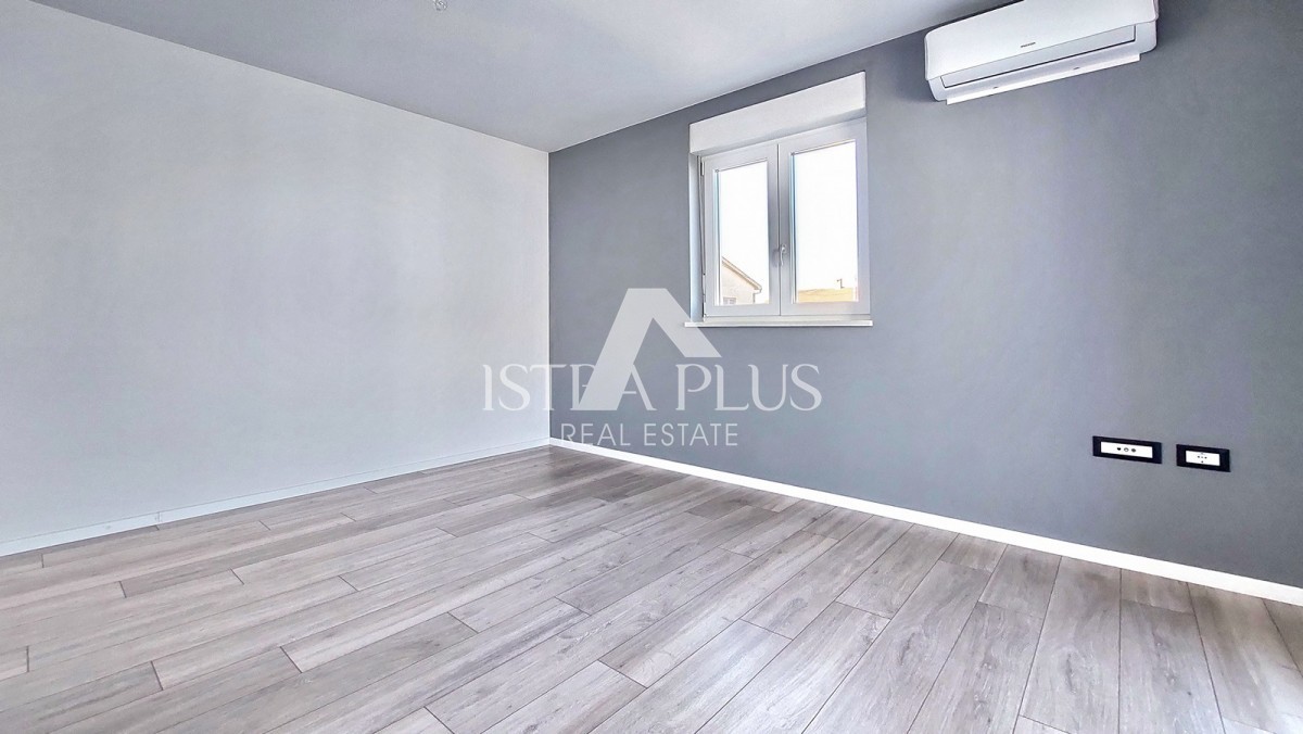 Prodaje se novi stan površine 65 m² u okolici Poreča, sastoji se od ulaznog hodnika, dnevnog boravka, natkrivene terase, kuhinje, dvije spavaće sobe i kupaonice. Stan ima PVC stolariju s 3 IZO stakla i komarnicima, klime u svim sobama, podno grijanje u kupaonici i 2 parkirna mjesta ispred zgrade. Stan se nalazi na drugom katu, udaljen je cca 8 km od mora i cca 7 km od centra grada.