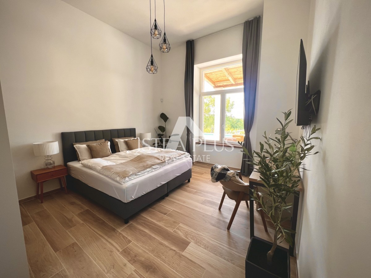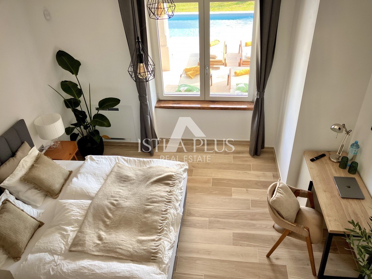 Ova stara seoska škola od kamena, kompletno je renovirana 2023. godine. U mirnom i tipičnom istarskom zaleđu, nedaleko od Poreča.
