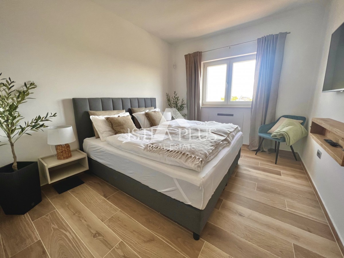 Prizemje od 304.36m2, sastoji se od 5 spavaćih soba i svaka ima svoju vlastitu kupaonicu, jedan gostinjski wc, predivna open space kuhinja, blagovaona i dnevni boravak s izlazom na terasu gdje se nalazi ljetna kuhinja s roštiljem i velikim stolom, sunčalište i grijani bazen od 52m2.