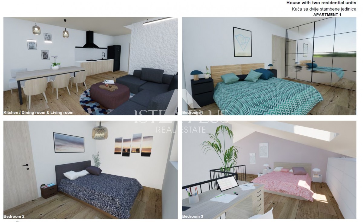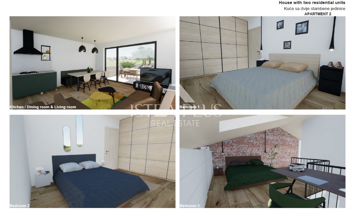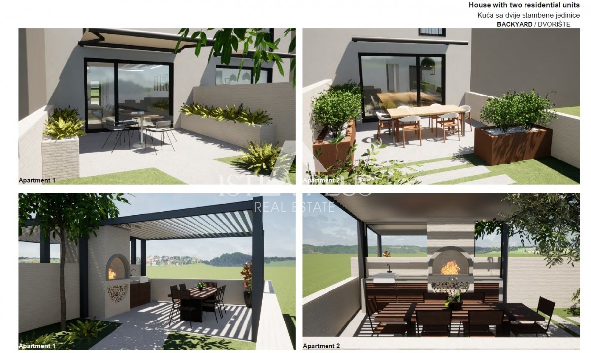 U mirnom i ne previše naseljenom mjestu udaljeno od Poreča 6km graditi će se kuća sa dvije stambene jedinice. Svaka kuća moći će se kupiti zasebno ali također postoji mogućnost kupnje obije.