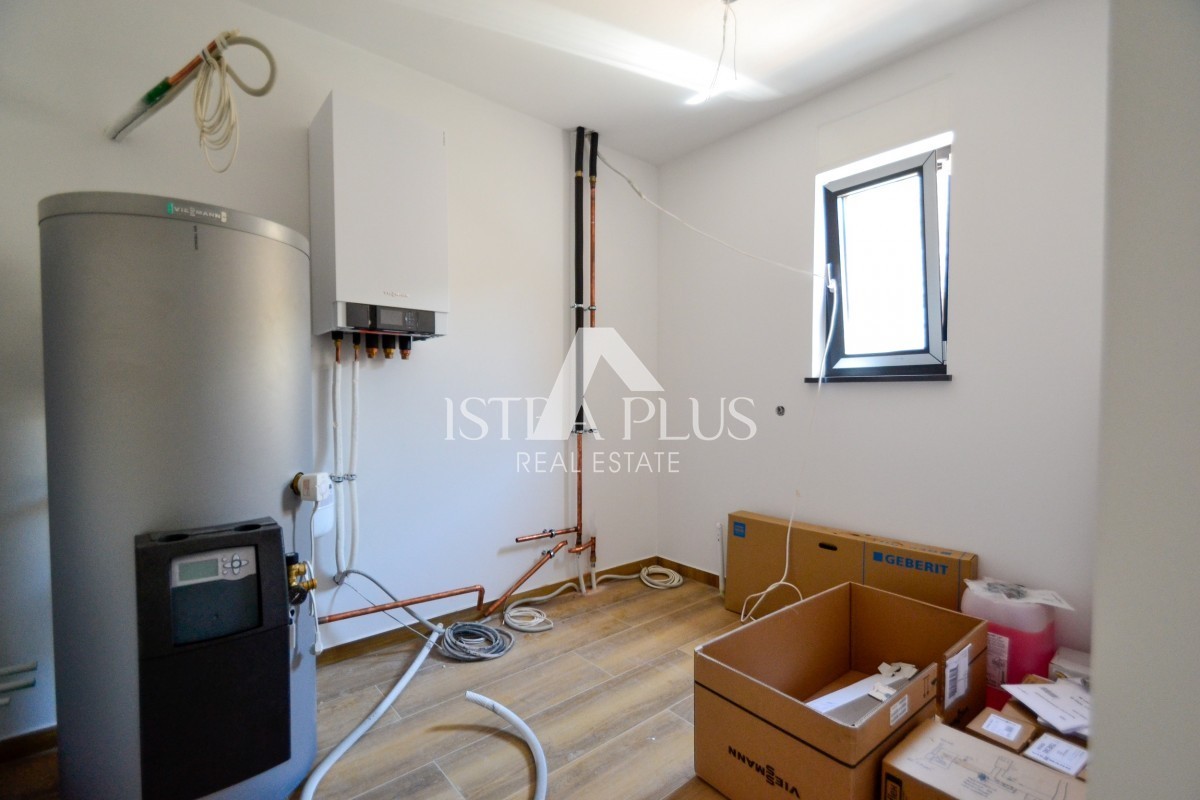 Podno grijanje provedeno je cijelom kućom ,2-3 parkirna mjesta -Vrlo kvalitetna i komforna ,arhitektonski promišljeno konceptirana kako bi bila prilagođena za jednostavan i kvalitetan život cijele godine . Dodatni detalji:,Stolarija: PVC antracit,Izolacija 10 cm ,Grijanje: dizalica topline, podno grijanje, kamin + klime,