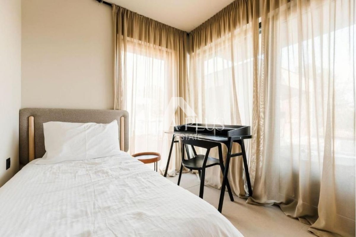 Prizemlje se sastoji od predsoblja, kuhinje s blagovaonicom i dnevnog boravka, spavaće sobe i gostinjskog WC-a. Velike staklene stijene protežu se duž cijelog zida te osiguravaju stalan pogled na vanjsku terasu s bazenom. Zahvaljujući velikoj količini prirodne svjetlosti, prostor je iznimno prozračan i ugodan za boravak. Prvi kat vile raspolaže sa tri spavaće sobe, svaka sa svojim kupaonom. Sve sobe imaju izlaz na vlastiti balkon, što osigurava maksimalnu privatnost i udobnost. Ostakljeni zidovi kupaonica, neutralne boje interijera i staklena balkonska ograda spavaćim sobama daju poseban izgled i ugođaj.