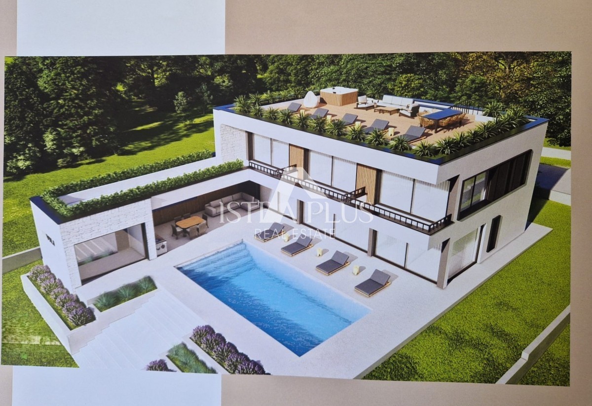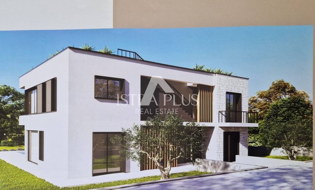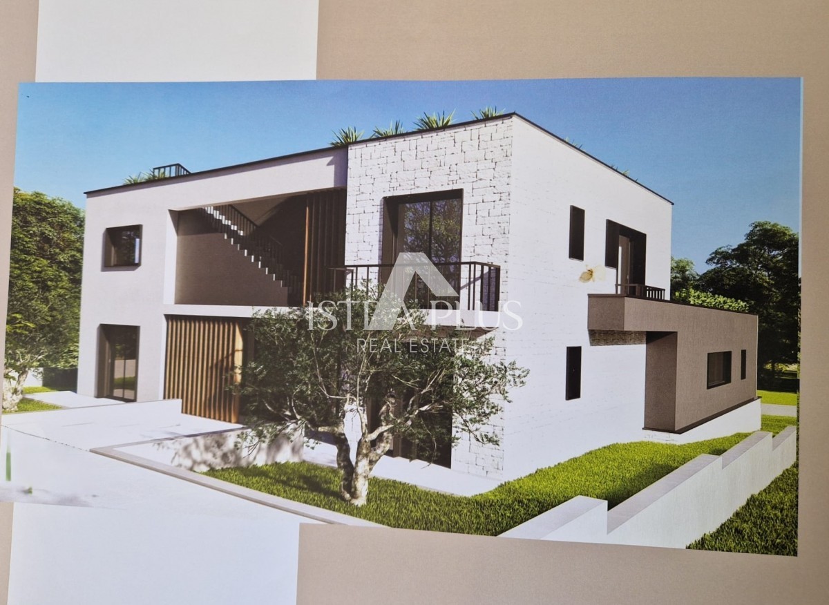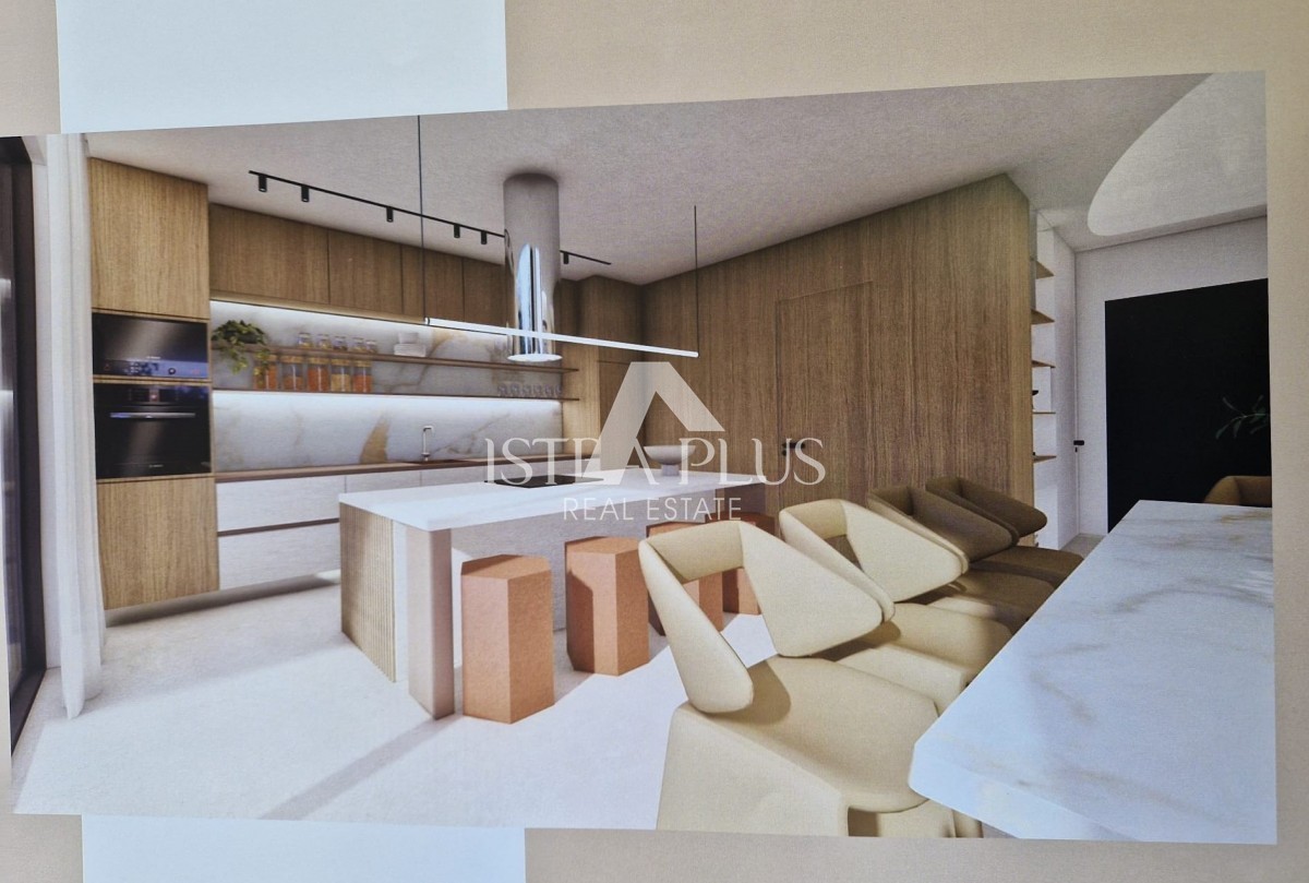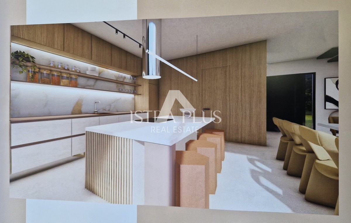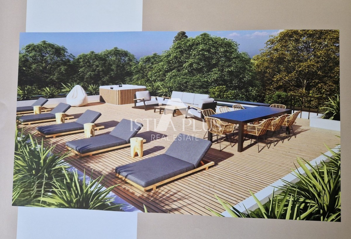 Sa 1. kata vode vanjske stepenice na krovnu terasu gdje će se nalaziti jacuzzi, sunčalište te dio za druženje i opuštanje s panoramskim pogledom na istarski krajolik i more.