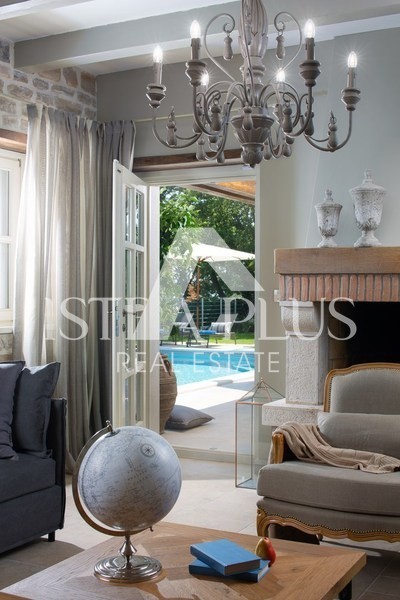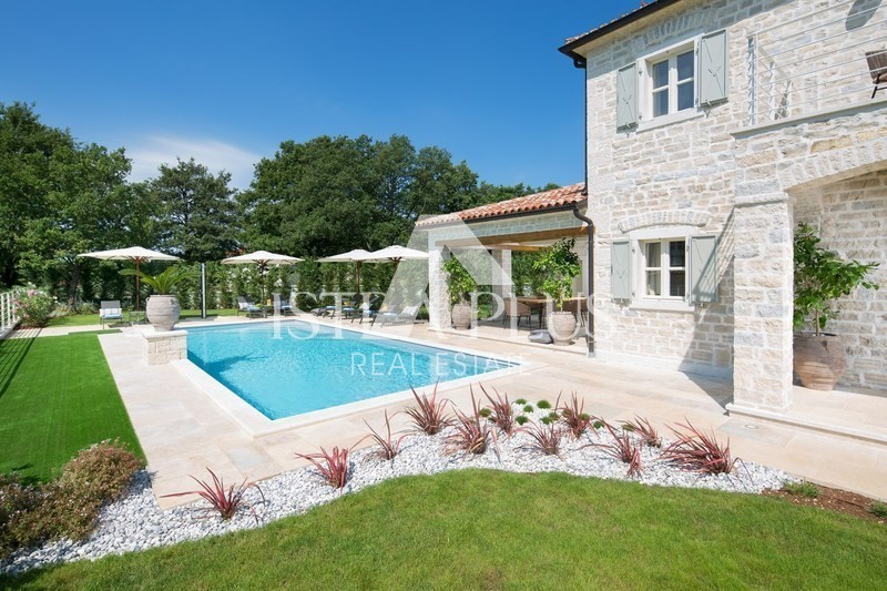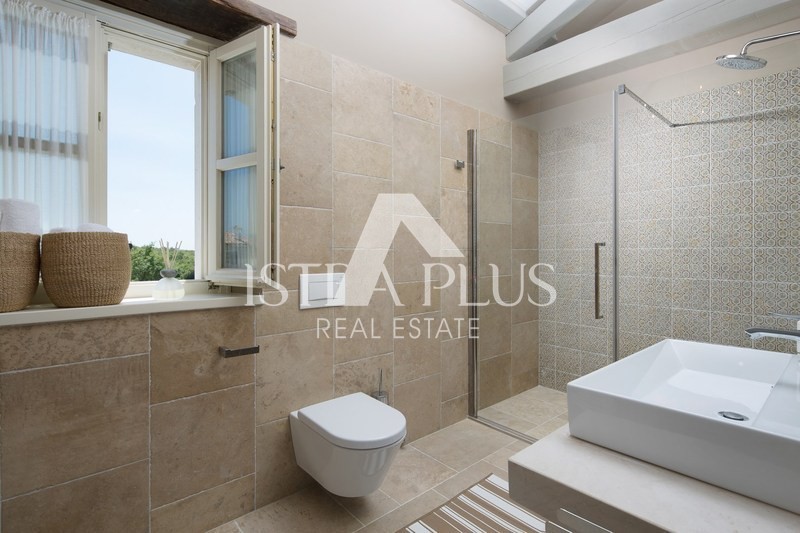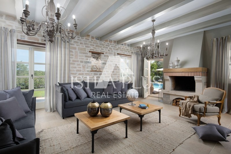 Luksuzna vila sa bazenom površine 359 m2 na dvije potpuno klimatizirane etaže kapaciteta 8 osoba. U prizemlju kuće nalazi se prostrani dnevni boravak sa kaminom i SAT-TV te izlazom na prostranu natkrivenu terasu sa stolom za objedovanje, kaminom za roštiljanje i lounge zonom, velika, potpuno opremljena kuhinja sa blagovaonicom, jedna dvokrevetna soba sa dvostrukim krevetom, vlastitim tuš-WC-om i izlazom na terasu, zaseban WC u dnevnom dijelu i tuš/WC na terasi.
