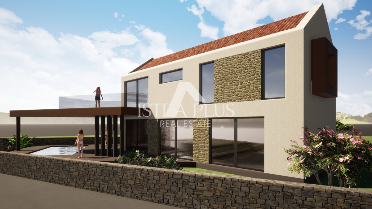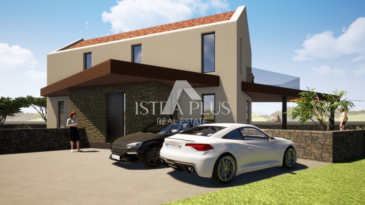 U blizini Vrsara i Rovinja , na vrlo mirnoj lokaciji okružena prirodom nalazi se moderna kuća u izgradnji atraktivnog dizajna.