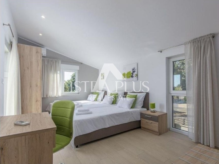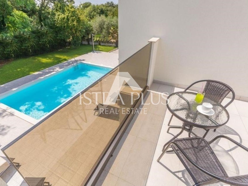 Villa s bazenom ukupne stambene površine 230 m2, 400m do mora i 1km od centra Poreča. Nalazi se na zemljištu površine 693 m2 te se prostire na 2 etaže.
