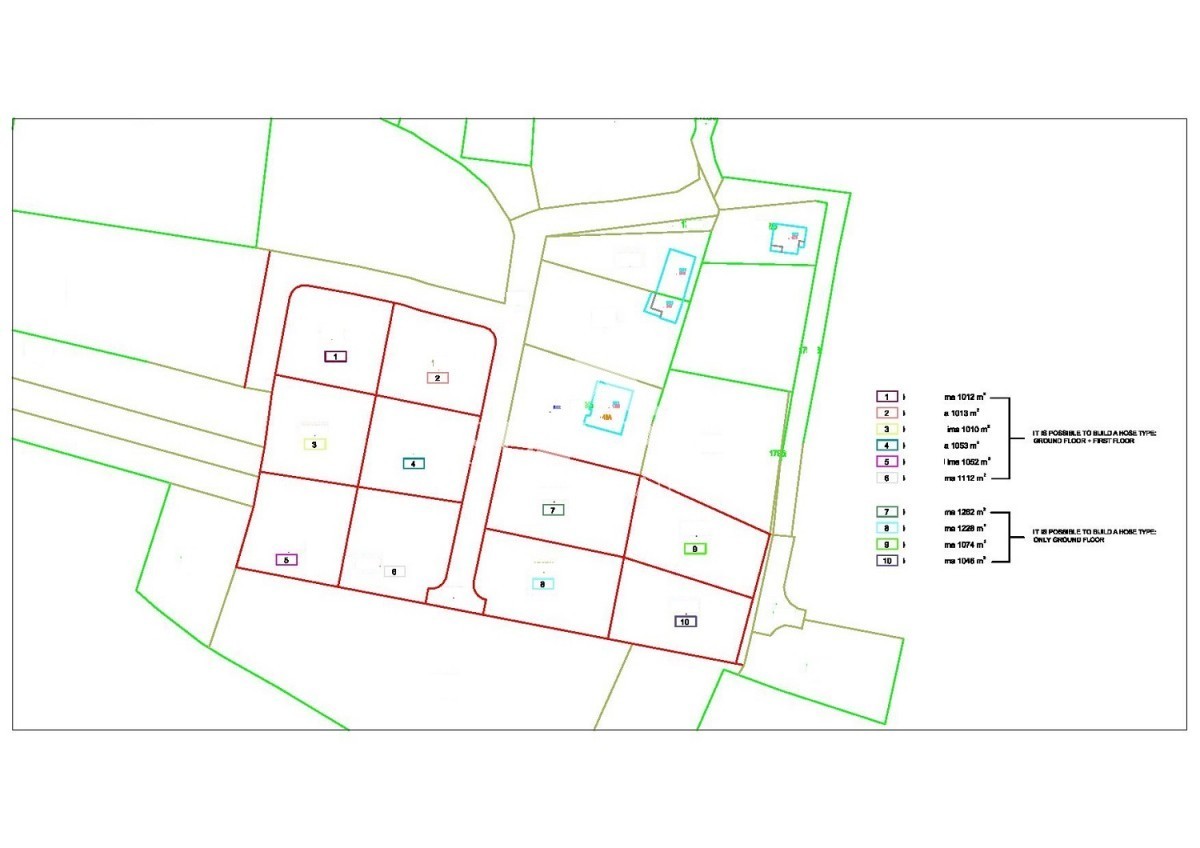-Na parcelama oznake od 1 do 6 moguća je gradnja kuća tipa P + 1 (prizemlje + kat sa eventualnim podrumom),
