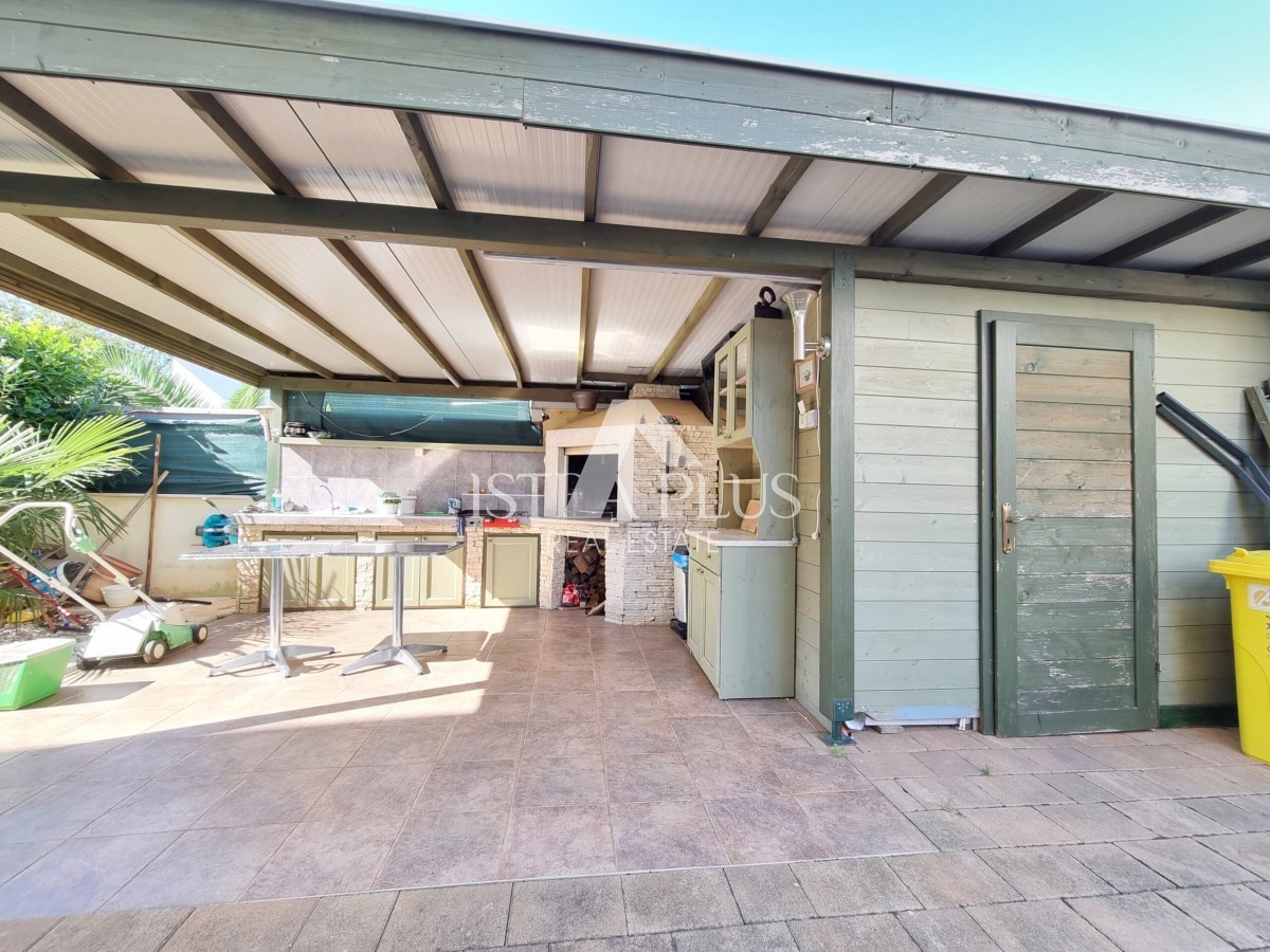 Il cortile ha una superficie di 184 mq, con molto verde, una cucina estiva e un ripostiglio.