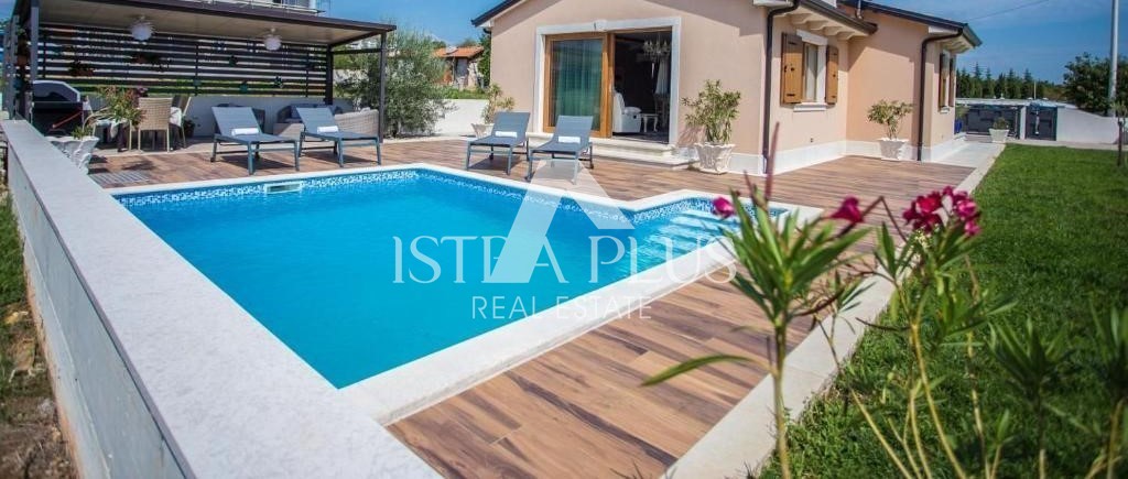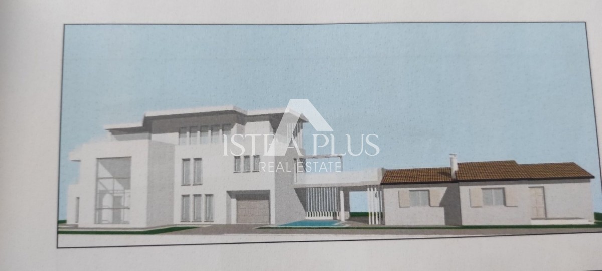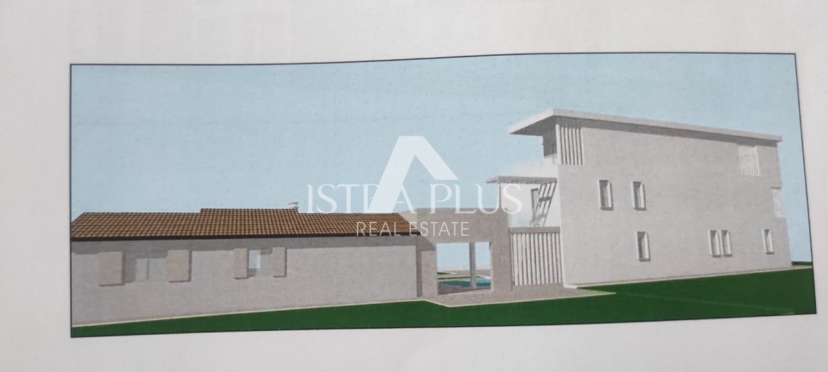 Una casa a un piano con piscina e appezzamento di terreno con un progetto in vendita nelle vicinanze di Parenzo, a ca. 7 km.