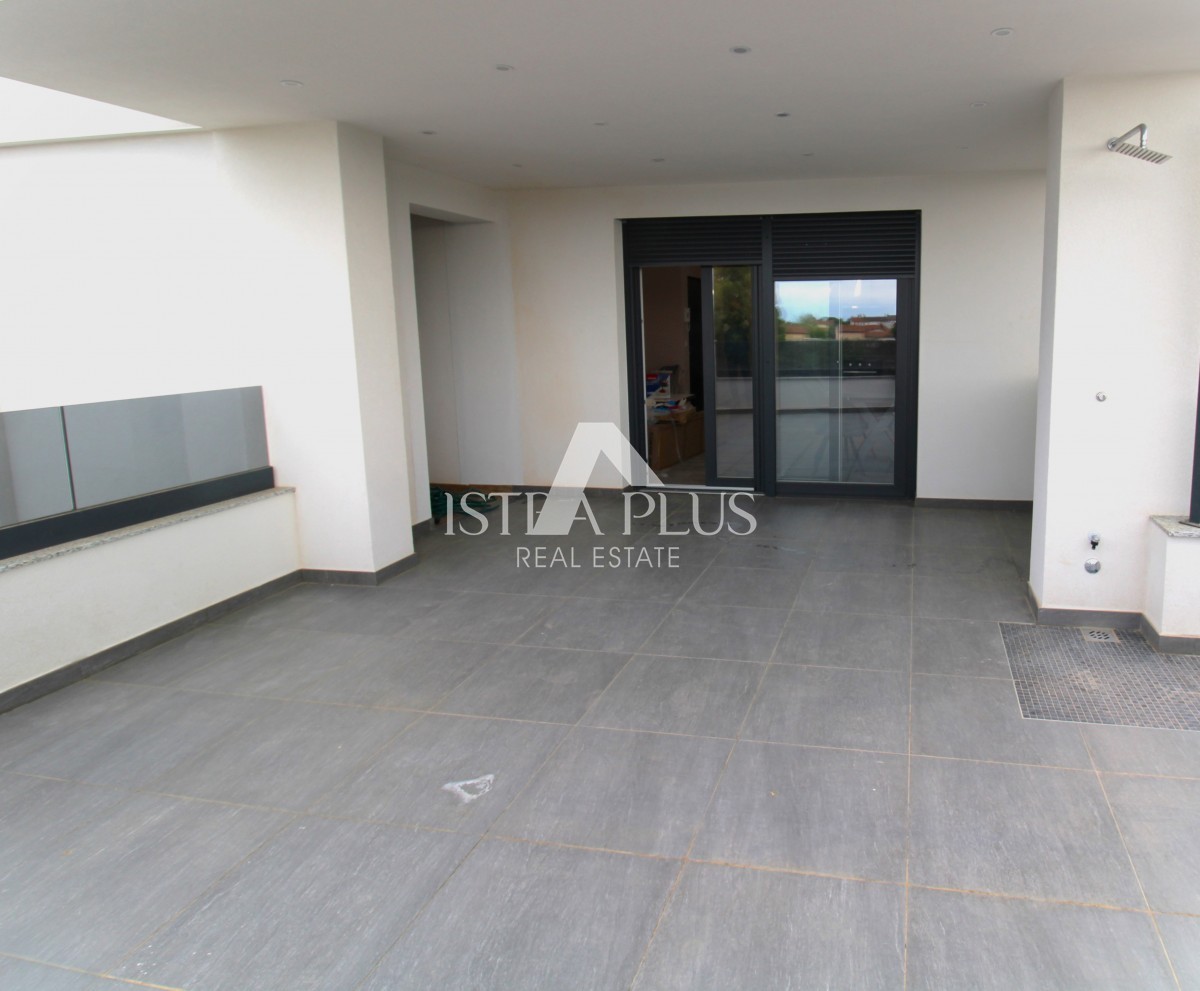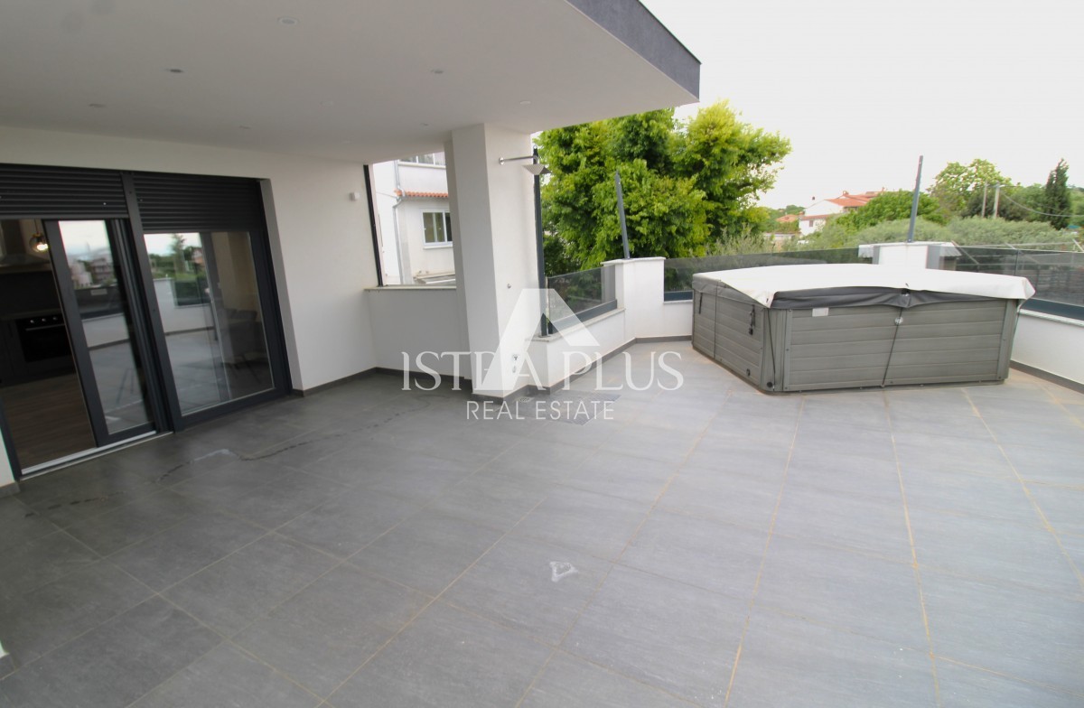 Un lussuoso appartamento al 1° piano con una grande terrazza, jacuzzi e sauna si trova a 5 km dalle prime spiagge e da Parenzo.
