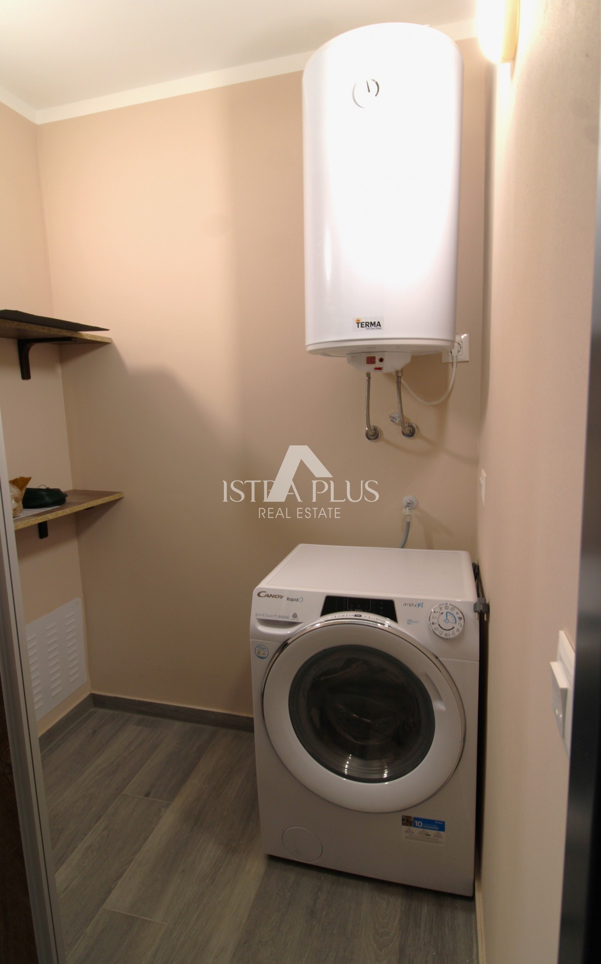 L'appartamento è dotato di riscaldamento a pavimento, aria condizionata e camino nel soggiorno.