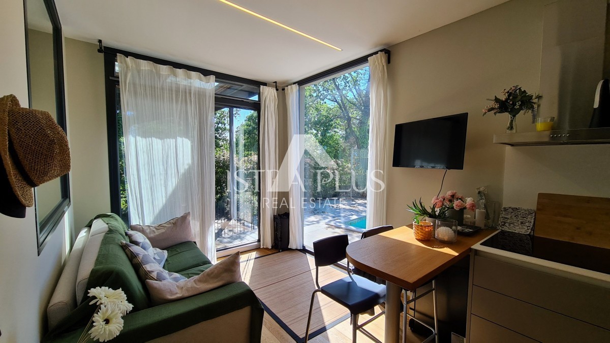 Design moderno al piano terra con una superficie totale di 100 m2, a 12 km da Parenzo e dal mare.
