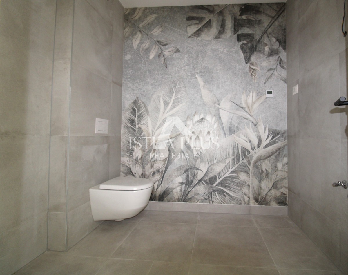 L'appartamento si trova al piano terra con una superficie totale di 93.32 mq ed è composto da un ingresso, una camera matrimoniale con il proprio bagno, 2 camere da letto che condividono un bagno, un soggiorno con sala da pranzo e un open space cucina, dalla quale si accede ad una terrazza coperta (14,95 m2) e lettini con la propria piscina. L'appartamento dispone inoltre di un ripostiglio/sala macchine al piano interrato.