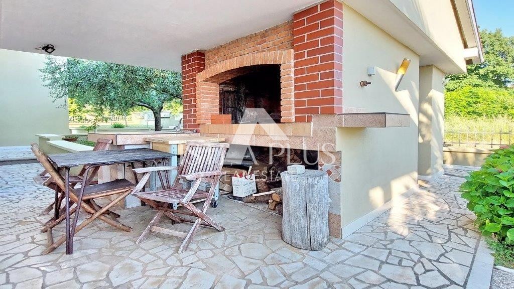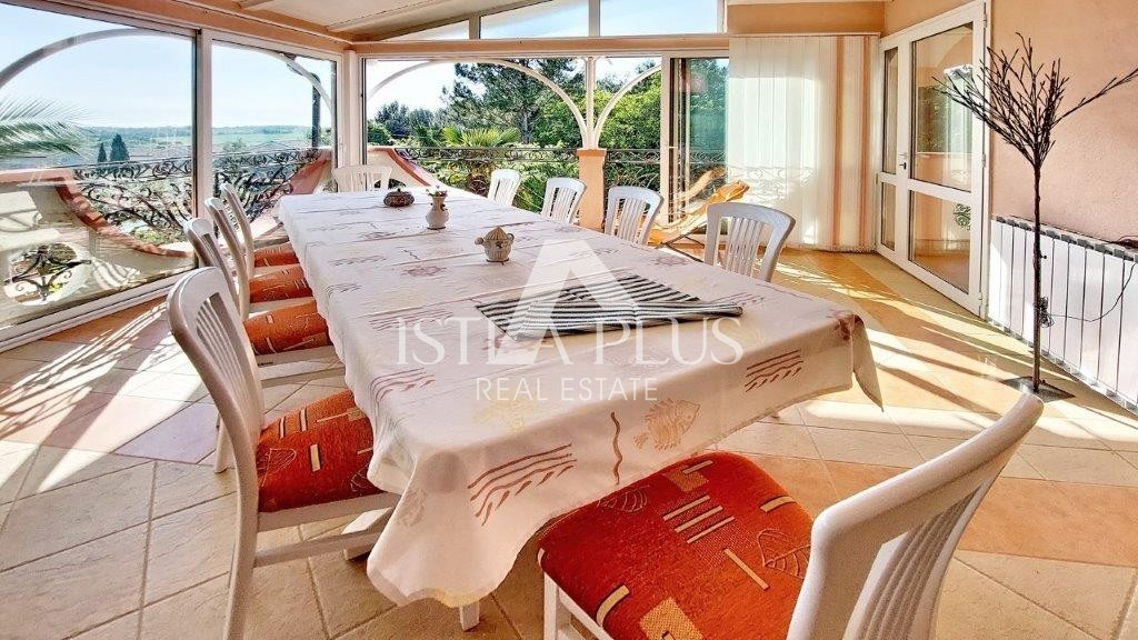 Nelle vicinanze di Parenzo viene venduta una casa indipendente con una superficie totale di 357 m2, composta da un grande appartamento a due piani al piano terra e al primo piano della casa con una superficie di 259 m2, un appartamento di 51 mq, un garage di 25 mq, una taverna e un ripostiglio. L'appartamento a due piani è composto da un soggiorno, una terrazza chiusa (giardino d'inverno) con vista sul mare, 5 camere, 3 bagni, un bagno per gli ospiti e un balcone.