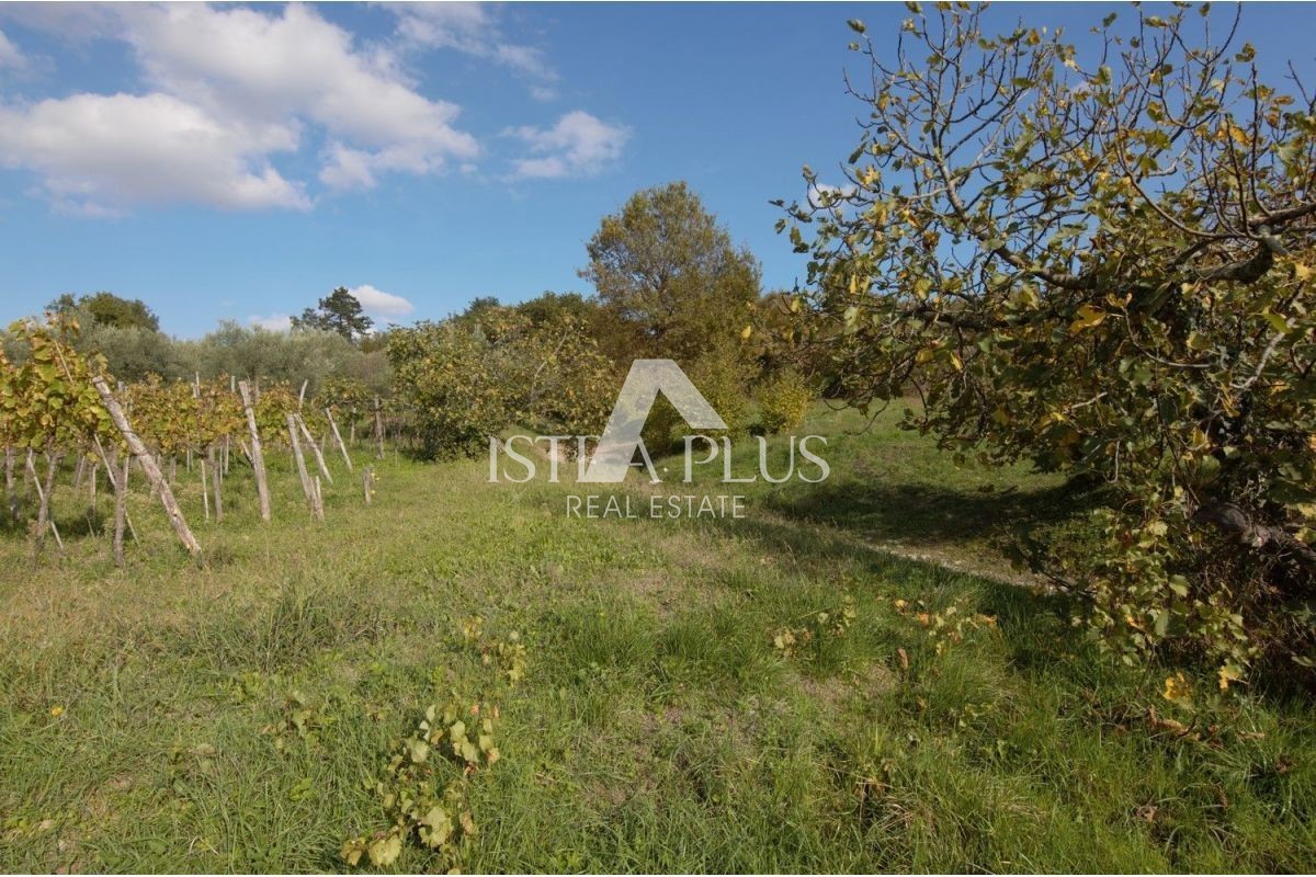 V bližini Buzeta, na robu vasi, gradbeno zemljišče 572 m2 s 1503 m2 kmetijskega zemljišča. S parcele je odprt panoramski pogled na okoliške hribe in naravo.