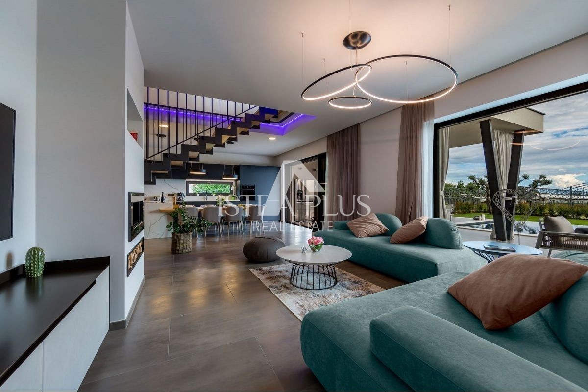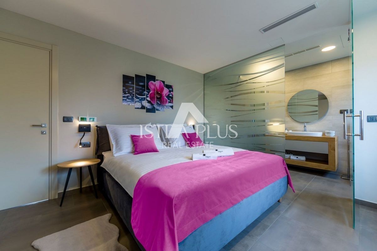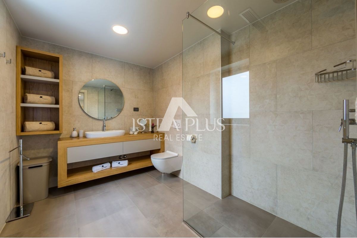 Vila ima 295 m2 površine v dveh popolnoma klimatiziranih etažah. V pritličju se nahaja privlačen dnevni prostor z opremljeno kuhinjo, jedilnico in dnevno sobo, vse v enem prostoru, ena dvoposteljna soba z lastno kopalnico in ena otroška soba s kopalnico. V prvem nadstropju so tri dvoposteljne sobe, vsaka s svojo kopalnico, wellness z velikim whirlpoolom in savno ter teraso z ležalniki s čudovitim panoramskim pogledom na morje.